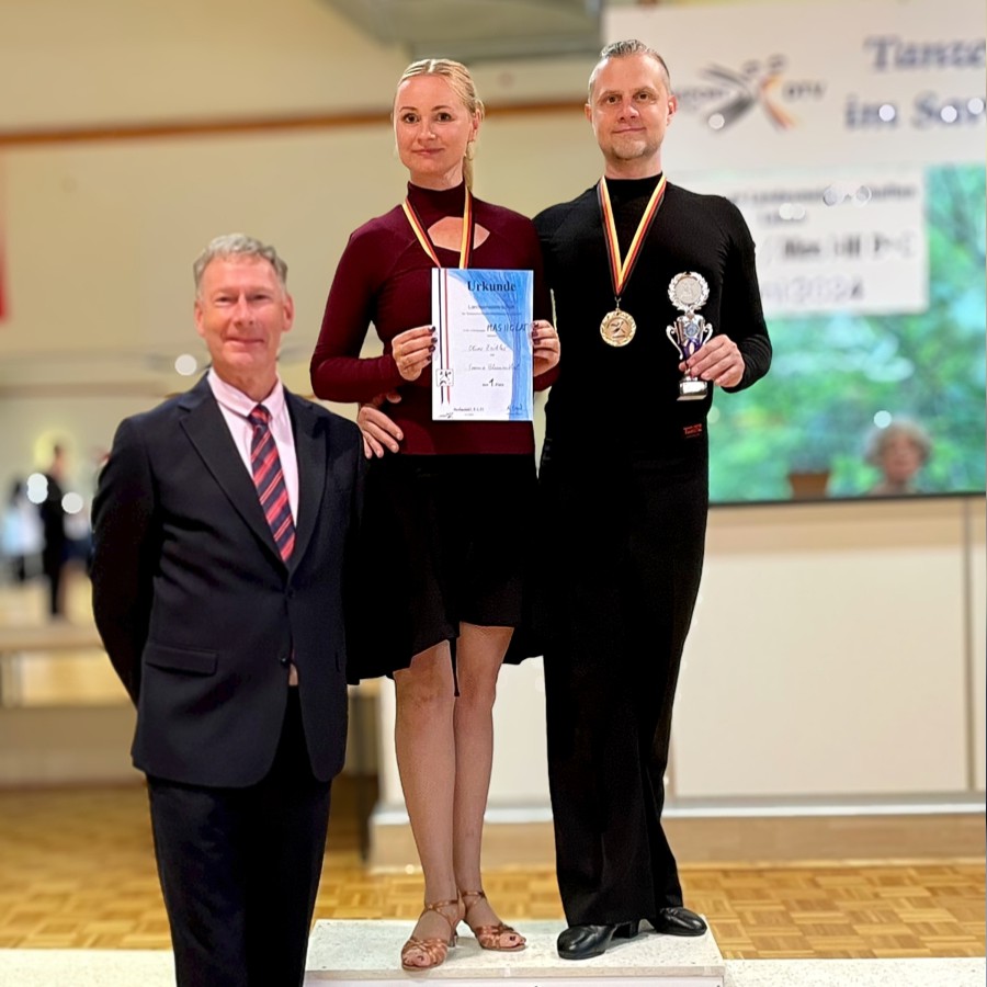 Bei der Gemeinsamen Landesmeisterschaft Nord 2024 in Norderstedt am 8. Juni erzielten wir unsere ersten Meisterschafts-Erfolge im Turniertanz. In der Klasse Masters II D Latein sicherten wir uns den 1. Platz und wurden damit Norddeutsche Meister sowie Landesmeister Mecklenburg-Vorpommern. In der Masters I D Latein belegten wir den 2. Platz und erhielten den Titel des Vize-Norddeutschen Meisters sowie ebenfalls den Landesmeistertitel. Zusätzlich traten wir in der Klasse Masters II C Latein an und erreichten dort den 6. Platz, was uns ebenfalls den Landesmeistertitel Mecklenburg-Vorpommern einbrachte.