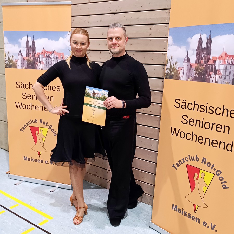 Wir haben am 17. Sächsischen Seniorenwochenende in Meißen erfolgreich teilgenommen. In der Kategorie Masters II D Latein traten wir gegen neun weitere Paare an. Mit einer starken Leistung konnten wir die Wertungsrichter überzeugen und den ersten Platz erreichen. Besonders freuen wir uns darüber, dass wir in den Einzelwertungen der Rumba, des Cha-Cha-Cha und des Jive jeweils den ersten Platz belegten. Dieser Erfolg bedeutete für uns den Aufstieg in die Masters II C Latein-Klasse, der einen wichtigen Meilenstein in unserer tänzerischen Entwicklung darstellt. Gleichzeitig war dieses Ergebnis ein schöner Abschluss für unsere Zeit in der Masters II D. Das Turnier war hervorragend organisiert und bot eine angenehme Atmosphäre für alle Teilnehmenden. Wir sind stolz auf unsere Leistung und danken allen, die uns unterstützt haben. Nun blicken wir motiviert auf die kommenden Wettbewerbe.